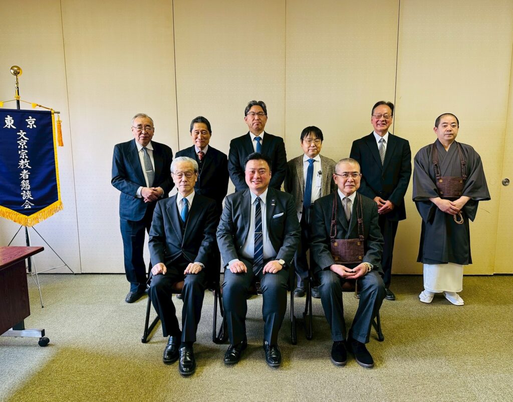 令和8年度第一回の文京宗教者懇談会の世話人・役員会(新年会含む)が2月27日に大本山護国寺本坊会議室で開催されました。出席者は代表の押見友仁宮司(湯島天満宮)、副代表の関本隆人貫主(大本山護国寺)はじめ、日本キリスト教団、金光教、生長の家、立正佼成会の代表者が集いました。本懇談会は、今年で設立43年。文京区内の諸宗教者が自由かつ平等な立場で集い、それぞれの宗義を尊重し、共に学びつつ相互理解を深め、会員間の連絡協力を密にして宗教者自身の向上啓発並びに文京区民の宗教心を高めることを目的にしています。