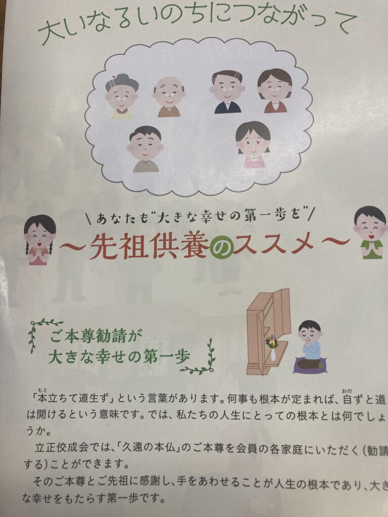 出射講師は海外布教やご自身の実践体験なども踏まえながら、万人に理解可能な私たちのいのちのもとへの感謝をする「いのちの感謝供養」の実践を強調されました。一般的に、欧米は縦の先祖の関係については、日本の文化伝統であり理解が困難であったことから、自分のいのちへの感謝の供養はできるのではないかと提案、理解を頂き、実践することで多くの功徳を頂いたことを語られました。
