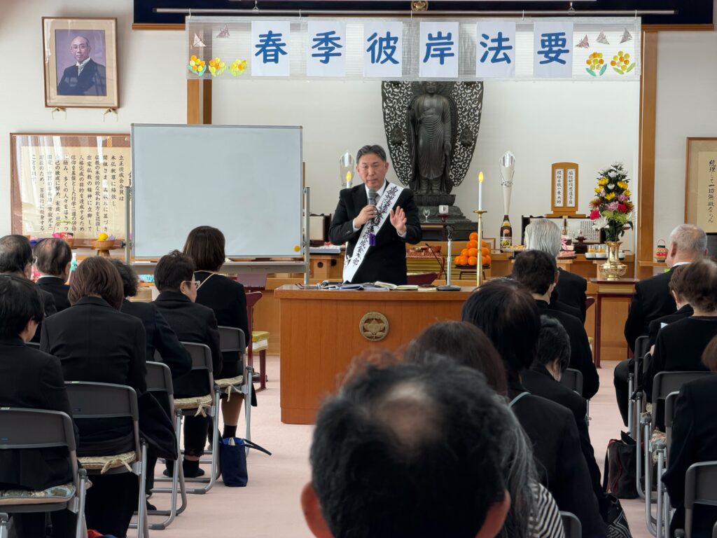 3月15日(日)教会道場において春季彼岸会式典を開催いたしました。奉献の儀、読経供養(戒名読み上げ含む)、体験説法、教会長結びの言葉で終了いたしました。